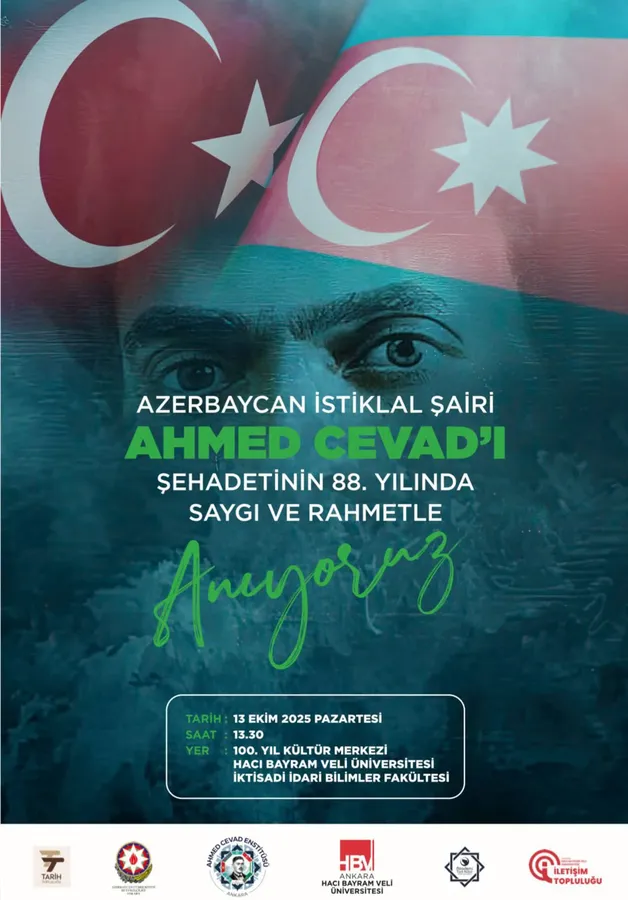 Ahmed Cevad Enstitüsü ile Azerbaycan Cumhuriyeti Türkiye Büyükelçiliği'nin ortak anma programı 13 Ekim Pazartesi günü saat 13:30'da Ankara Hacı Bayram Veli Üniversitesi, İktisadi İdari Bilimler Fakültesi'nin Beşevler'deki 100. Yıl Kültür Merkezinde yapılacak.