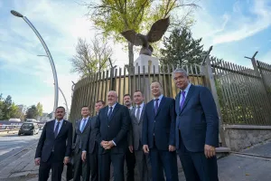 Başkent'teki ilk "Tuğrul Kuşu" heykeli, Macaristan Büyükelçiliği'nin Atatürk Bulvarı'na bakan köşesinde açıldı.
