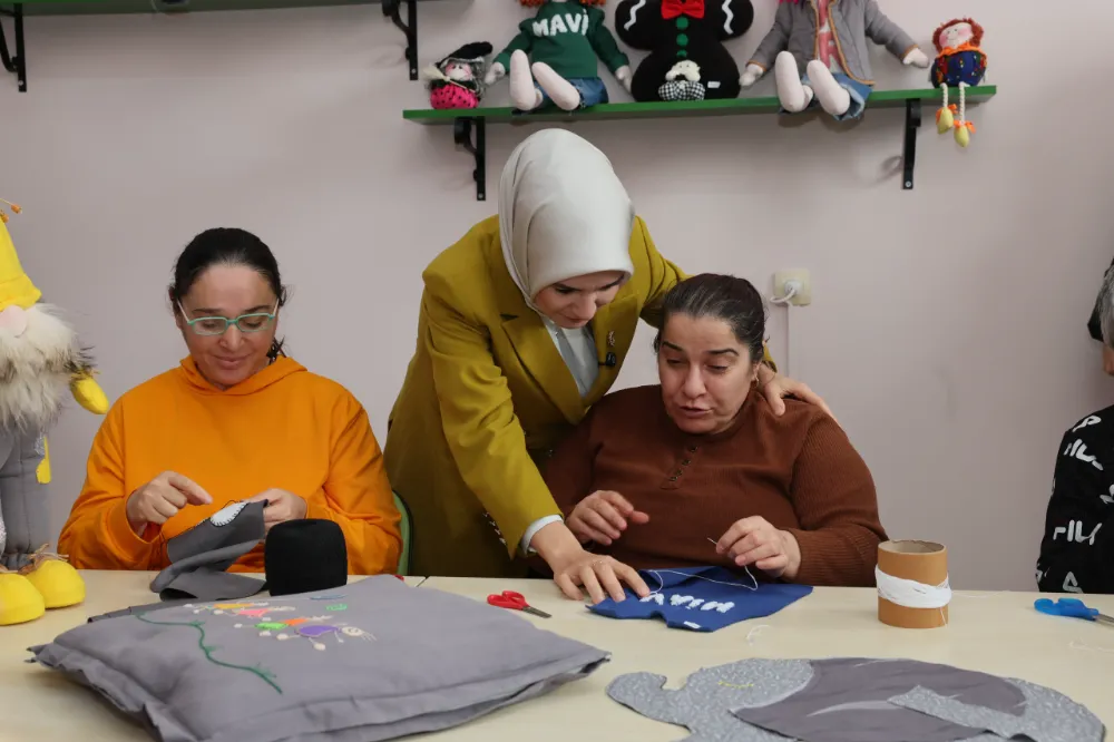 Buradaki engelli bireylerle yıl içinde zaman zaman buluştuklarını anımsatan Göktaş, çalışmaların farklı atölyelerde devam ettiğini, bugün de yeni çalışmaları yakından incelediklerini belirtti.