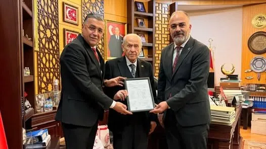Ankara Tüm Emlakçılar Meslek Esnaf Odası (ATEM) genel kurulunda seçimleri kazanan Başkan R. Burak Arpacı, başkanlık mazbatasını alır almak MHP Genel Başkanı Devlet Bahçeli'yi ziyaret etti.