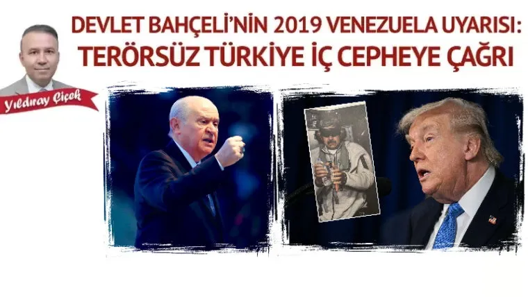 MHP Lideri Sayın Devlet Bahçeli’nin 28 Ocak 2019 tarihindeki, Venezuela’daki gelişmeleri ABD odaklı değerlendiren şu açıklaması ise bugünleri vizyonla gören en çarpıcı belge niteliğindedir: “Türkiye’nin beka sorunu yok demek için bir insanın ya sabah-akşam fok balığı belgeseli izlemesi ya da nesli tükenen kuşların peşine düşüp ülkeler arası mekik dokuması yeterlidir.