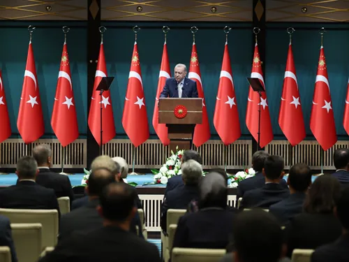 Cumhurbaşkanı Recep Tayyip Erdoğan, Cumhurbaşkanlığı Külliyesinde gerçekleştirilen Cumhurbaşkanlığı Kabinesi Toplantısı’nın ardından basın açıklaması yaptı.