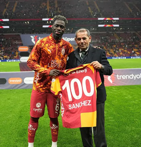 Maç öncesinde Davinson Sanchez’e, Galatasaray’da 100 maçı geride bırakması anısına Başkan Dursun Aydın Özbek tarafından plaket ve kendisine özel hazırlanan forma hediye edildi.
