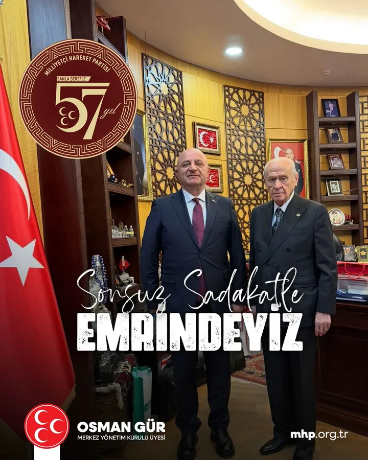 Milliyetçi Hareket Partisi MYK Üyesi Osman Gür, “Ülkümüz; Türk milletinin huzuru ve refahı hedefimiz; Türkiye Cumhuriyeti'nin ilelebet varolmasıdır” dedi.