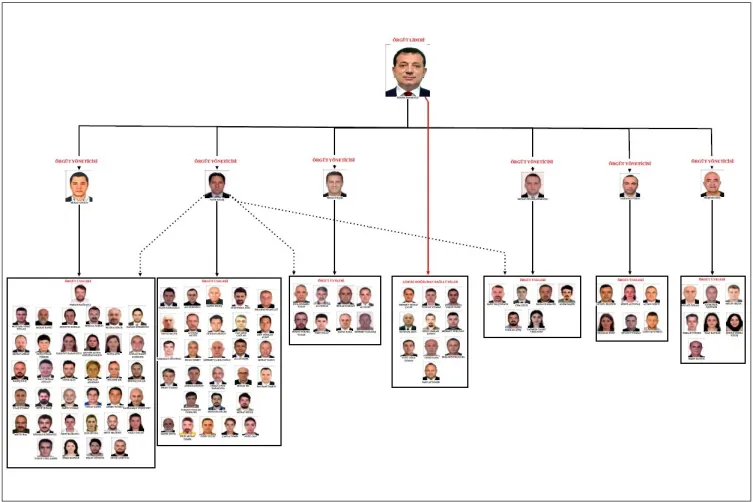 Hakkında kamu davası açılan şüphelilerden 99'unun örgüt mensubu, Ekrem İmamoğlu'nun örgütün kurucusu ve elebaşı olduğu belirtilen açıklamada, şüpheliler Fatih Keleş, Murat Ongun, Ertan Yıldız, Murat Gülibrahimoğlu, Adem Soytekin ve Hüseyin Gün'ün örgütün yöneticileri olduğu kaydedildi.
