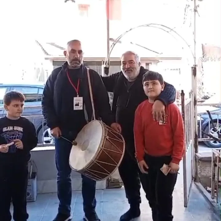 Davulcuları, torunlarıyla karşılayan Kılıç, kendilerine verdikleri ulvi hizmet için teşekkür ederken, torunları Alper Tunga, Göktürk ve Çınar, Serkan abilerine bahşişlerini verdi.