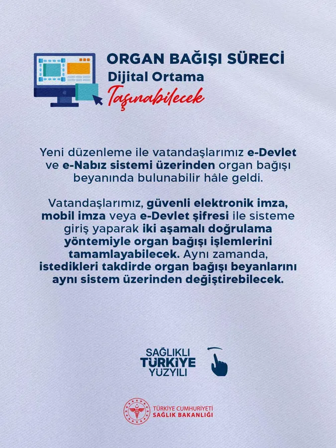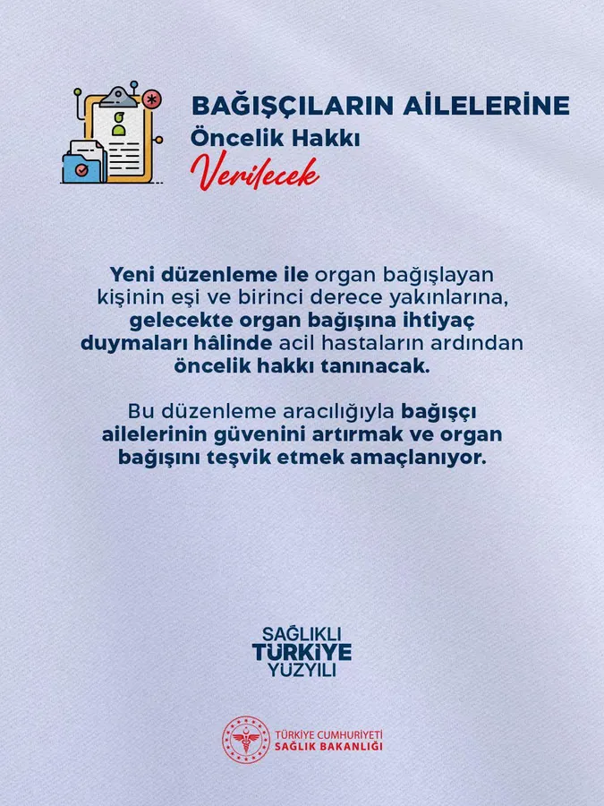 Organ bağışı sürecini kolaylaştıracak dijital olanaklar ve organ bağışı yapan kişilerin ailelerine yönelik yeni haklar aracılığıyla organ nakli sisteminde hız, güven ve şeffaflık güçlendirildi.