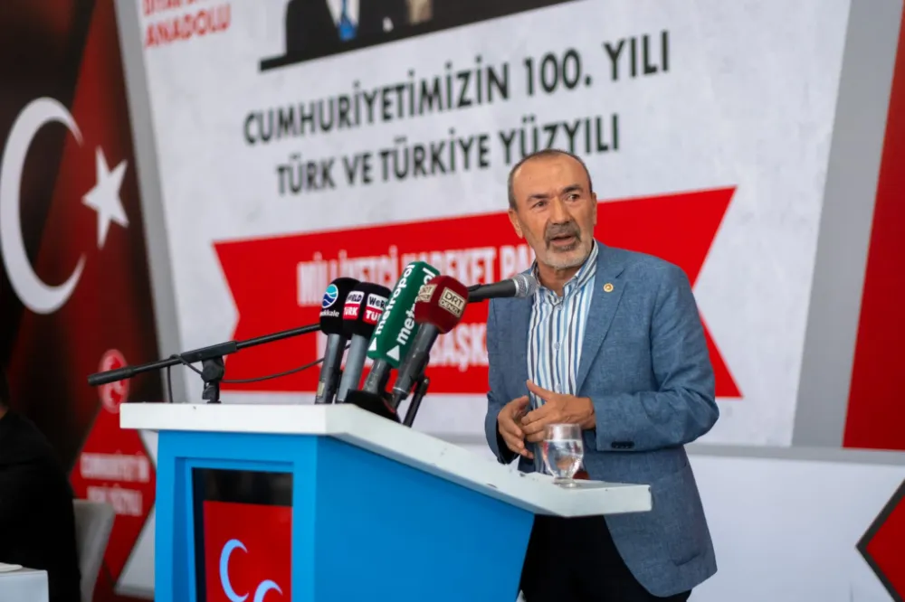 “Şimdi, buna bir de anketçiler sıraya girdiler. En son, bir hafta evvel, gazetelere yansıyan bir anket şirketinin araştırdığına göre Diyanete olan güven aşağı inmiş, çok enteresan. Efendim, bizim de ilk aklımıza gelen 2023 anket sonuçları. 2023 seçimlerindeki anket sonuçlarında Milliyetçi Hareket Partisini, oy birliğiyle, anketçilerin yüzde 95'i barajın altına gömdü ve halka ilan ettiler. Şimdi, Milliyetçi Hareket Partisi barajdan nasıl çıktı? Barajın üzerine çıktı, Türkiye'nin 3'üncü büyük partisi oldu ve yeri burada, işte buradalar” diye konuştu.