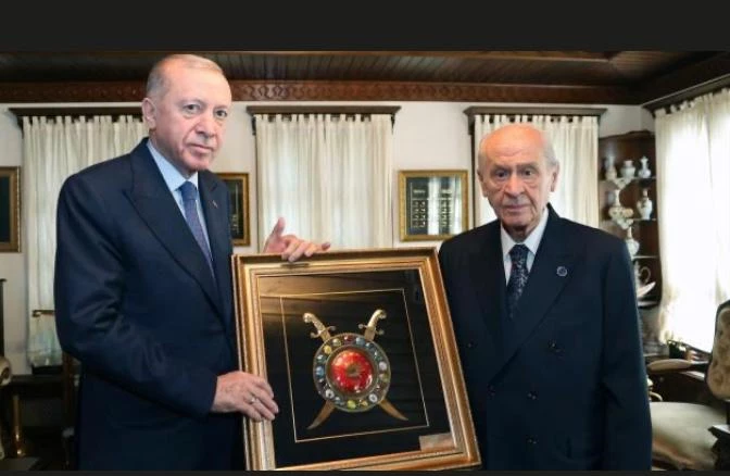 Cumhurbaşkanı Recep Tayyip Erdoğan, MHP lideri Devlet Bahçeli ile Devlet Bey’in Çayyolu’ndaki konutunda bir araya geldi.