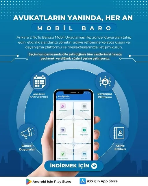 Ankara 2 Nolu Barosu, avukatların yanında, her an "MOBİL BARO!" uygulaması başlattı. 📲