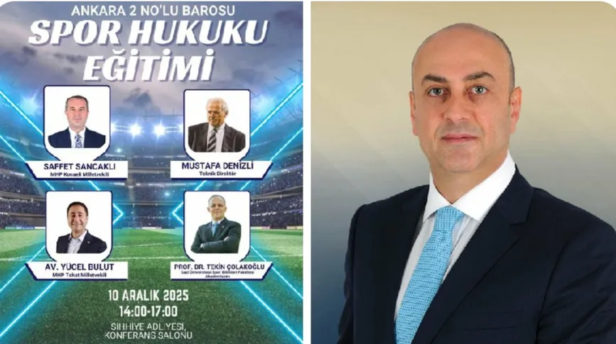 "Ankara 2 No’lu Barosu tarafından düzenlenen Spor Hukuku Eğitimi, 10 Aralık 2025 Çarşamba günü, Sıhhiye Adliyesi Konferans Salonu’nda gerçekleştirilecektir.