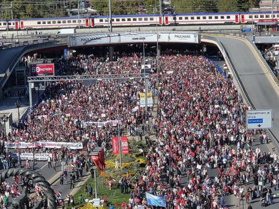 Aziz milletimiz, Kudüs’te Selahaddin’in, Gazze’de direnişin yanındadır. Siyonistlerin masum çocuklara, hastanelere, kadınlara yağdırdığı bombalara karşı Ankara’da yeri titreten bu yürüyüş, sadece bir tepki değil; bir medeniyet hafızasının ayağa kalkışıdır.