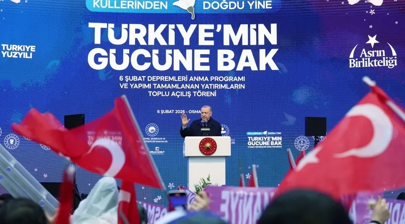 Cumhurbaşkanı Erdoğan, 6 Şubat Depremleri Anma ve Yapımı Tamamlanan Yatırımların Toplu Açılış Töreni’nde yaptığı konuşmada, “Devlet-millet dayanışmasının en güzel örneğini sergileyerek depremin açtığı yaraları beraberce sardık. 86 milyon olarak küllerimizden yeniden doğduk” dedi.