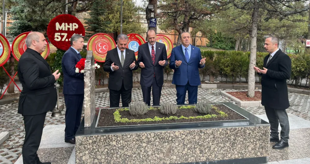 Milliyetçi Hareket Partisi'nin 57. kuruluş yıl dönümünde Genel Sekreter İsmet Büyükataman, Genel Sekreter Yardımcıları Tamer Osmanağaoğlu ve Vahit Kayrıcı, Başbuğ Alparslan Türkeş'in kabrini ziyaret etti.