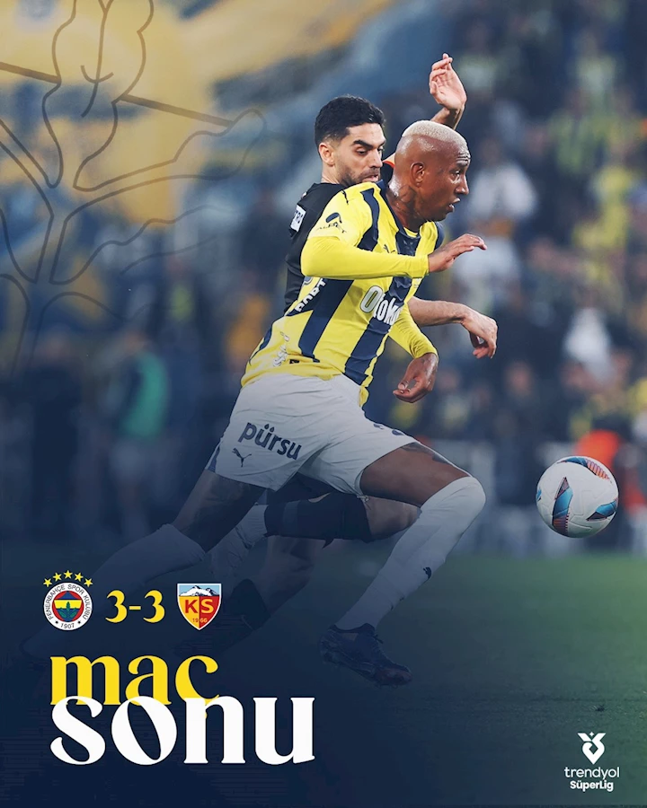 Lider Galatasaray'ın şampiyonluk yolundaki tek rakibi Fenerbahçe Kadıköy'de konuk ettiği Kayserispor ile 3-3berabere kaldı.