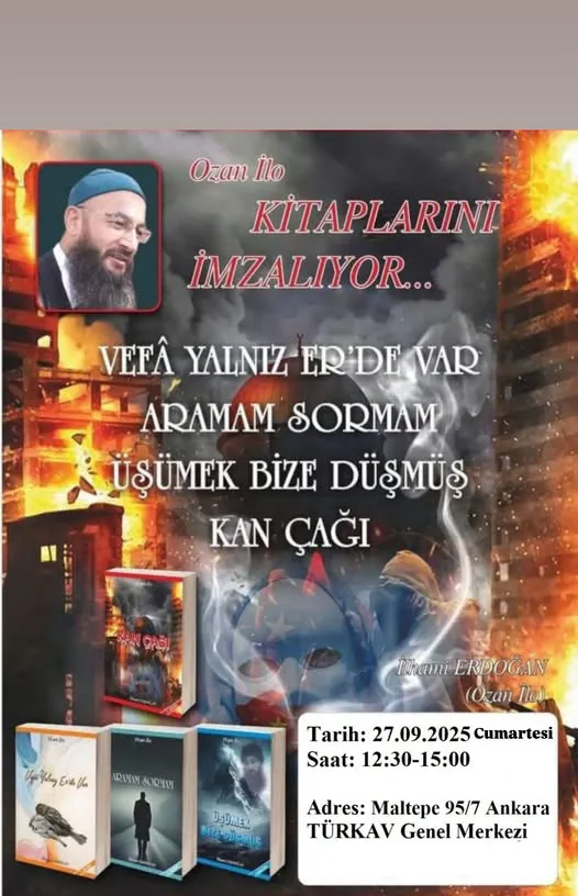 Milliyetçi Ülkücü Hareket'in Taş Medreseli Ozanı İlhami Erdoğan (Ozan İlo) Cumartesi günü kitapları için bir imza günü düzenleyecek.
