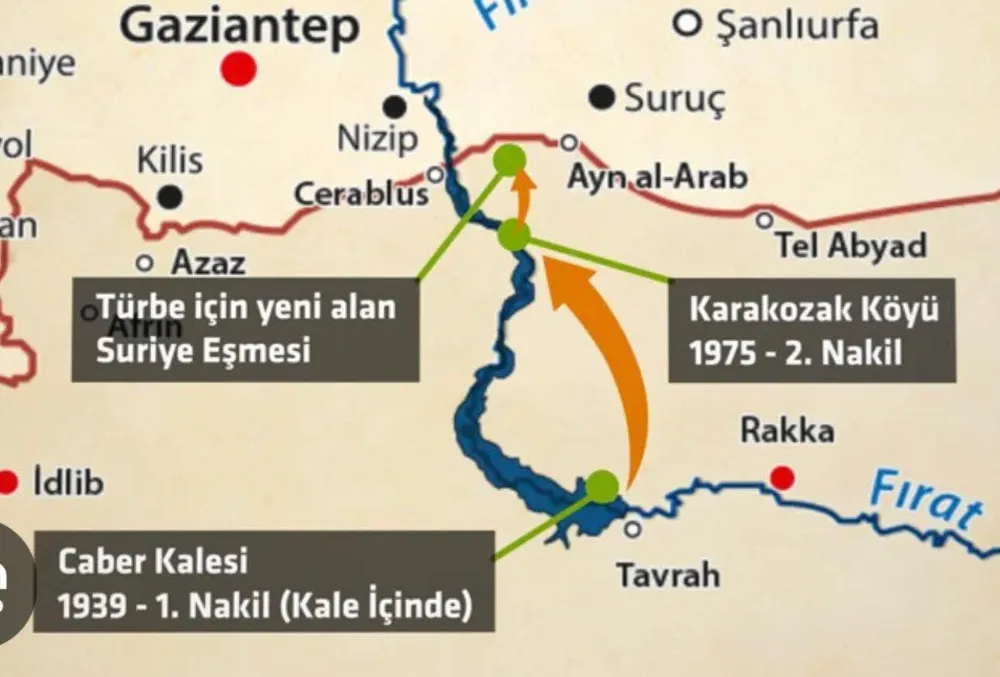 "Bilindiği üzere Süleyman Şah’ın türbesi Suriye’de ancak uluslararası antlaşma ile Türkiye Cumhuriyeti toprağı olan Caber Kalesinde idi.. Baraj İnşaatı nedeniyle bölge su altında kalacağı için 1975 yılında Karakozak Köyü’ne taşınmıştı.